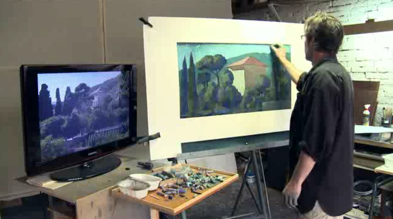 Pastel painting inspired from a landscape photograph in Tuscany (Italy).